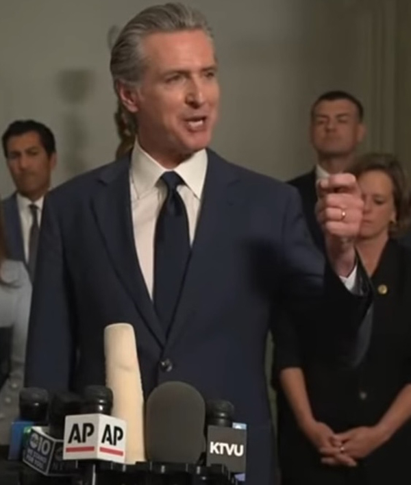 “We’re drawing a line in the sand,” Newsom said. “We did not choose this fight — we were drawn into it by an assault on democracy.”