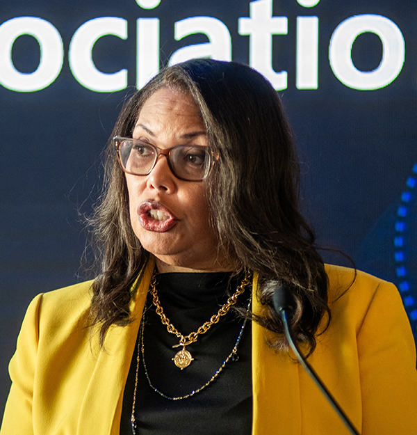 Sarah R. Harris, president and CEO of the Black Business Association, speaks at the launch of the Greater Los Angeles Black Leaders Collective Oct. 22. The collective hopes to close racial wealth gaps, strengthen community power and shape how billions of dollars in economic growth will be shared.