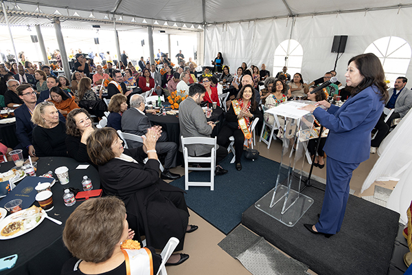 County Supervisor Hilda Solis addresses the audience Solis provides at the county’s Hispanic Heritage Month Reception Oct. 3 at the Kenneth Hahn Hall of Administration. Solis honored eight individuals and organizations for their contributions to the county’s social, economic, and cultural fabric.