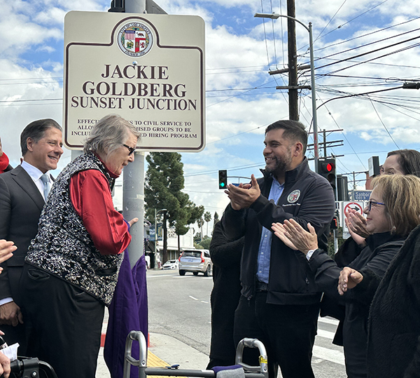 LOS ANGELES — The Sunset Junction intersection in Silver Lake has been renamed the Jackie Goldberg Sunset Junction in honor of the pioneering school board member, city councilwoman and assemblywoman.